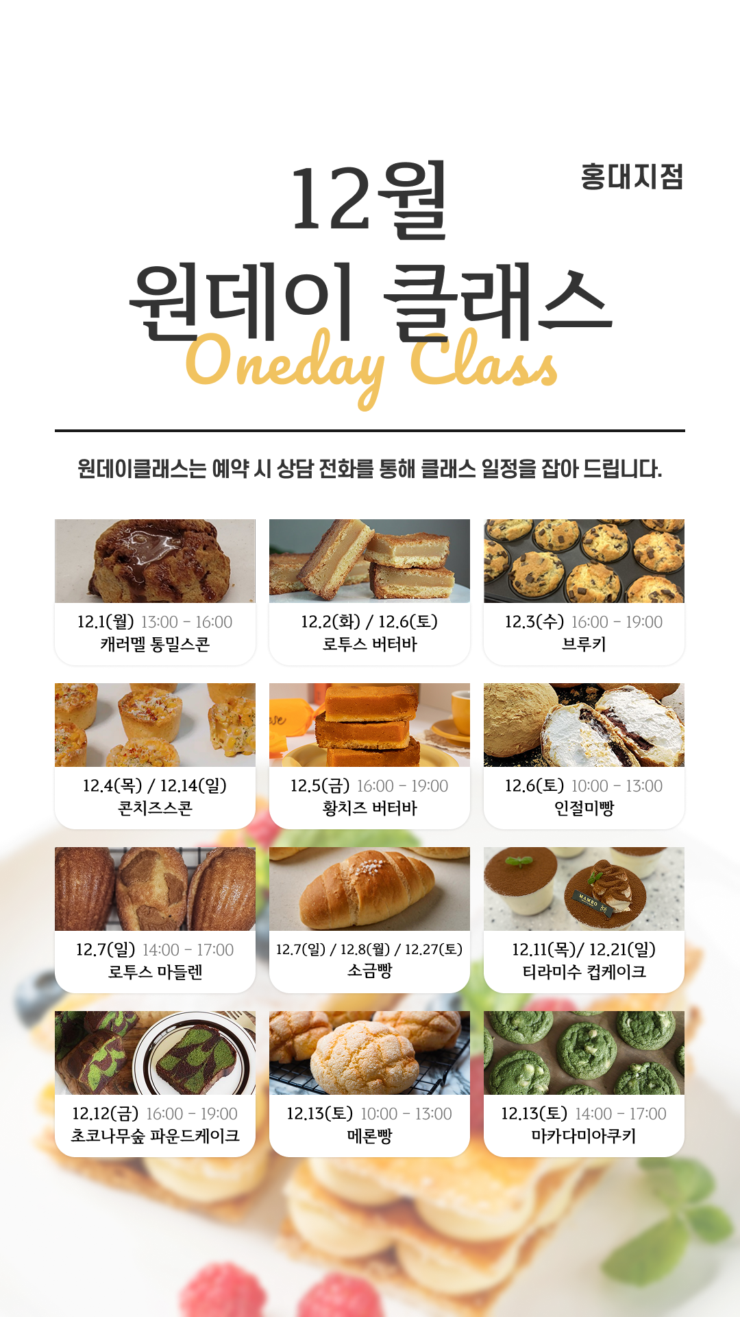 12월 지점별 원데이 클래스